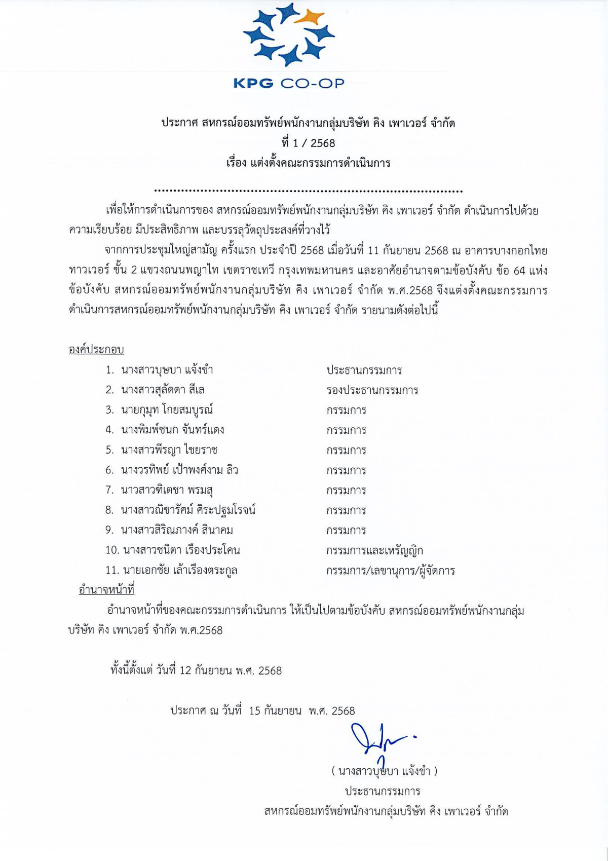 ชื่อบัญชี : สหกรณ์ออมทรัพย์พนักงานกลุ่มบริษัท คิงเพาเวอร์ จำกัด