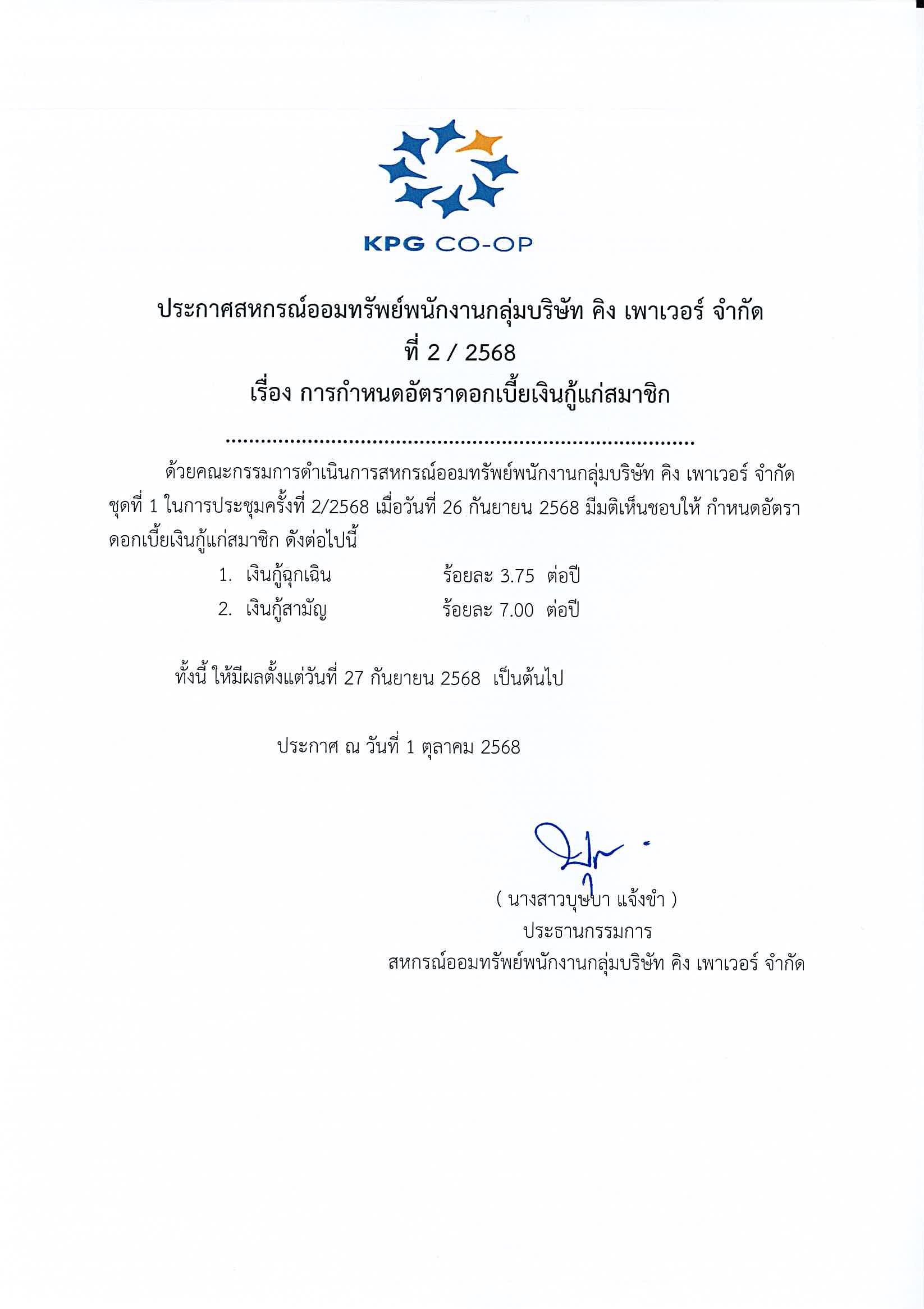 ประกาศดอกเบี้ยเงินกู้แก่สมาชิก